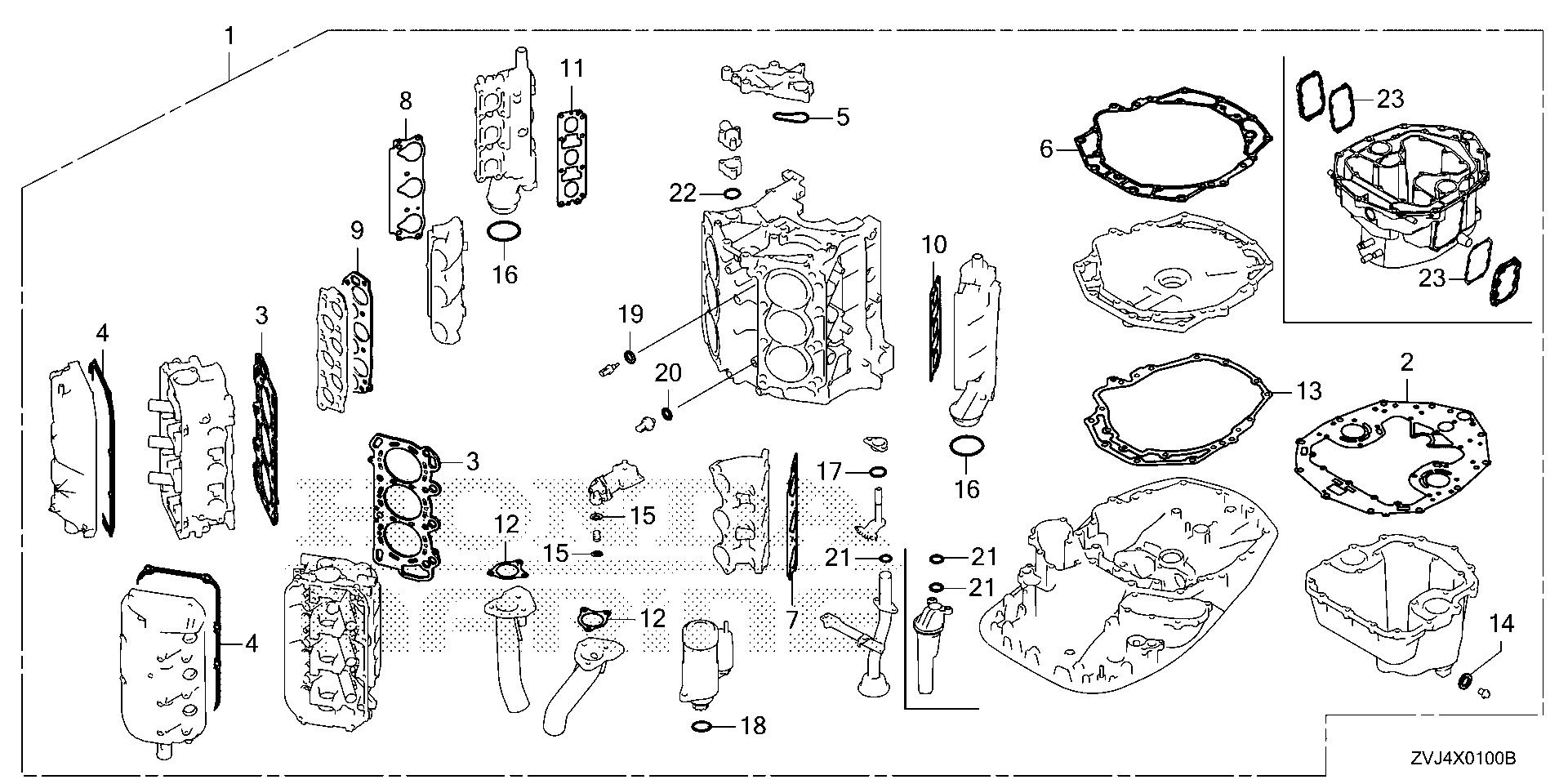 Mid - Large Outboard Engines (25 - 250hp) BF BF250 BF250D XCDA BBNJ-8000001-9999999 GASKET KIT - St. Lucie Outboard Marine